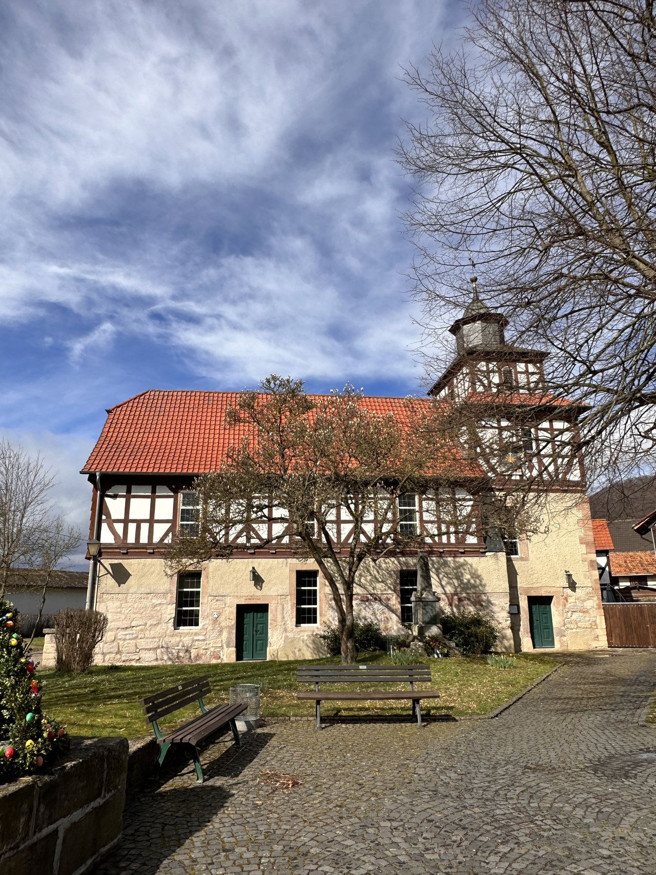Altenburschla ist ein kleines Dorf im schönen Werratal im Norden von Hessen. Es liegt zwischen Hügeln, dem Fluss Werra und grünen Feldern, und man hat das Gefühl, dass die Zeit hier langsamer vergeht. Durch die Fachwerkhäuser und engen Gassen mit Kopfsteinpflaster fühlt man sich wie in einem Freilichtmuseum. Es wurde sogar zum schönsten Dorf Deutschlands gekürt.